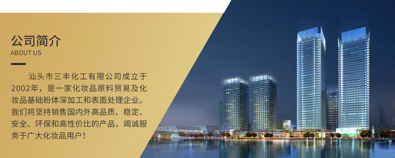 - 汕头市三丰化工有限公司是一家化妆品原料贸易及化妆品基础粉体深加工和表面处理企业。